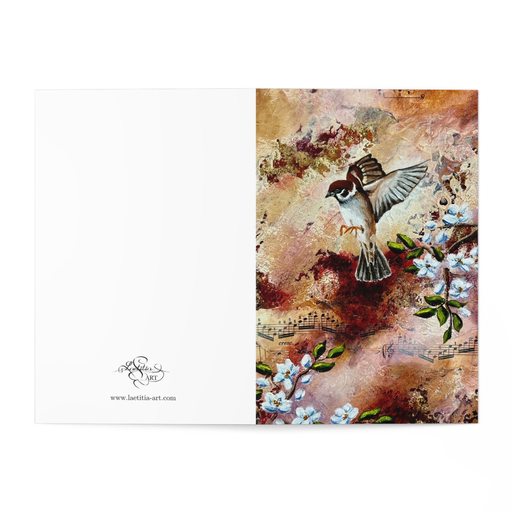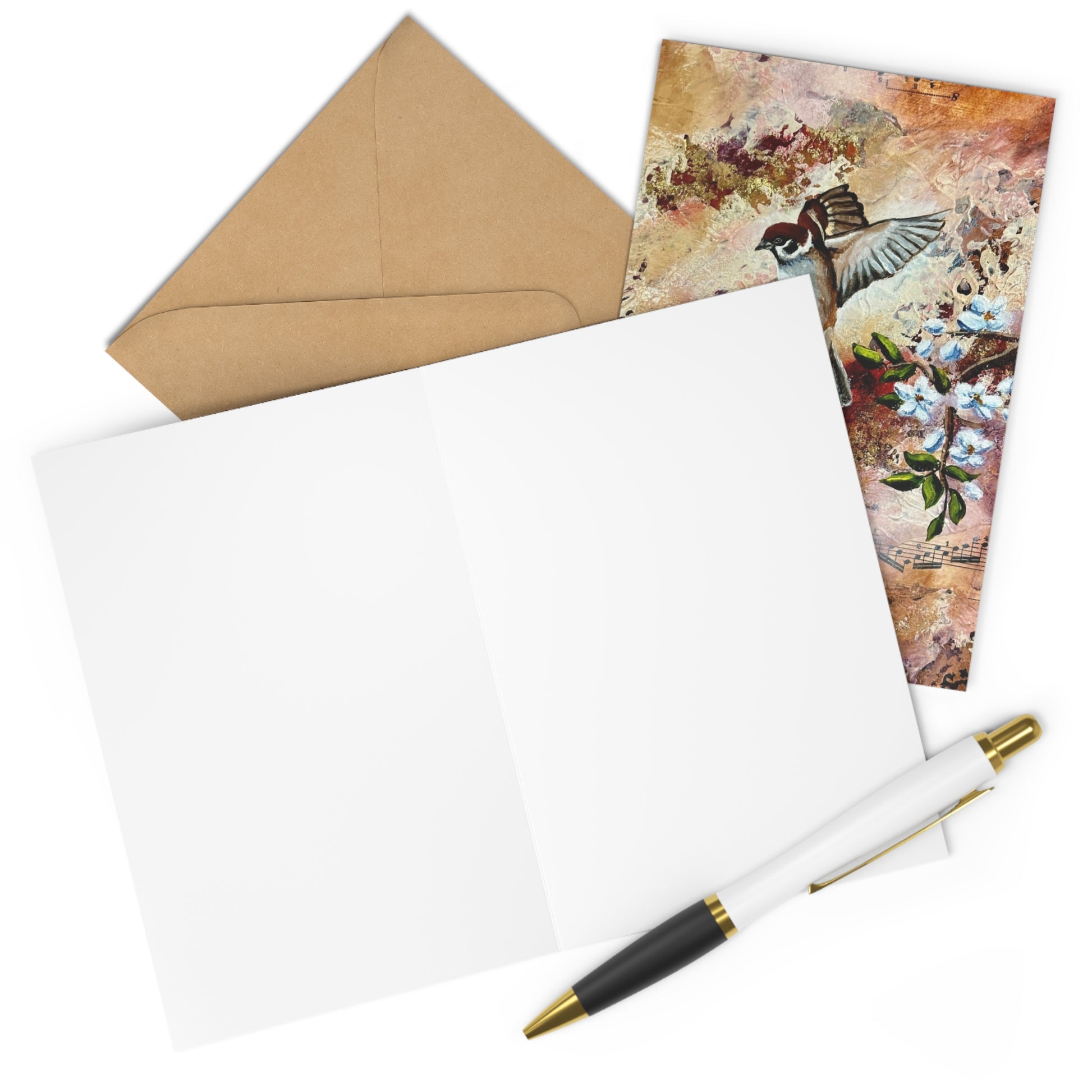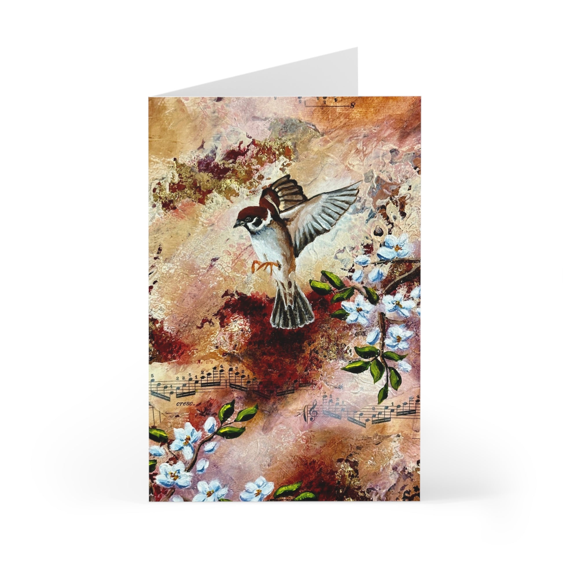 Un ensemble de 7 cartes de vœux représentant une partie de ma peinture originale « Little Messengers of Hope ».