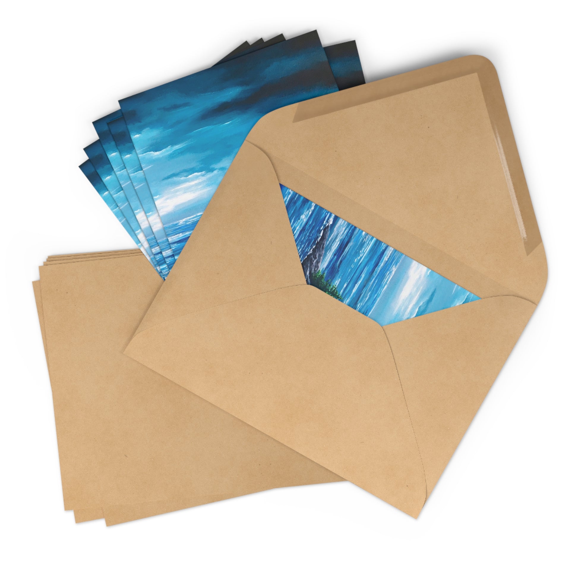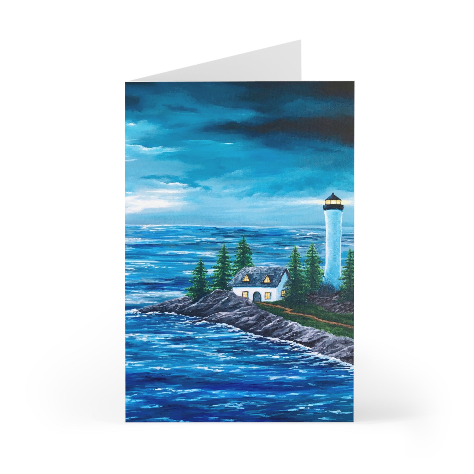 Un ensemble de 7 cartes de vœux représentant une partie de ma peinture originale « Steadfast ».